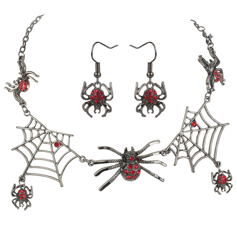 Brand Name: YacqMetals Type: Zinc AlloyGender: WomenMaterial: RhinestoneJewelry Sets Type: Necklace/Earringsis_customized: YesStyle: Hiphop/RockOccasion: PartyModel Number: ND07Shape\pattern: AnimalIncluded Additional Item Description: Necklace + earringsMetal: Alloy with rhodium platedNecklace length: 24inch (60cm)Necklace web length: 2inch (5cm)Necklace big spider size: (2x1.2)inch (5x3)cmEarrings Overall length: 1.2inch (3cm)Earrings spider length: 0.8inch (2cm)
